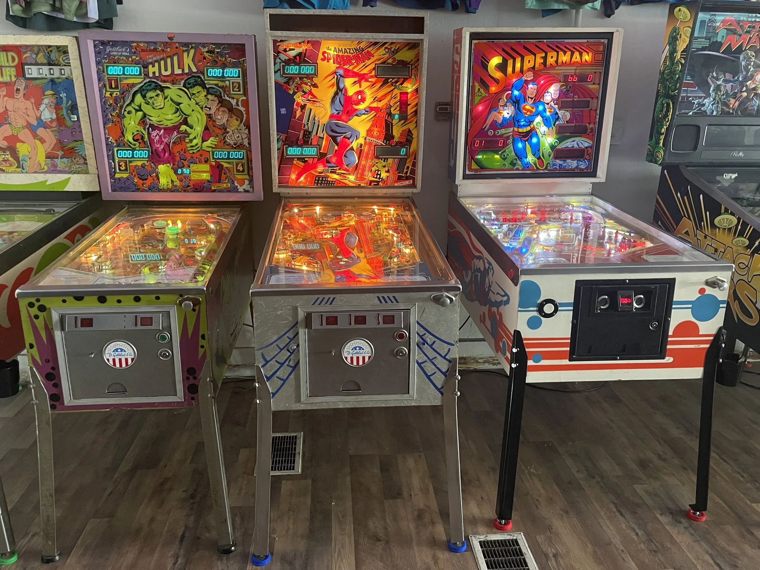 Our ever growing collection currently features over 30 different pinball machines with games like The Hobbit, Tales from the Crypt, Labyrinth, Attack from Mars, and Harry Potter.